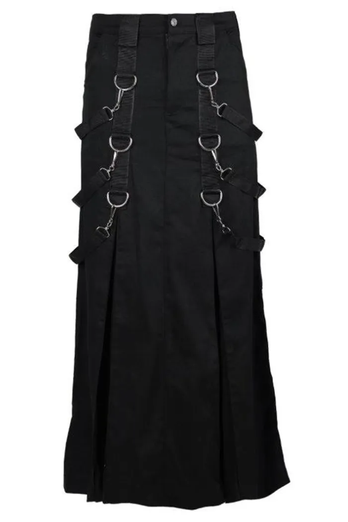 Skirt verziert mit vielen D-Ringen, Karabinern und Schlaufen. Außerdem versehen mit Gürtelschlaufen.
