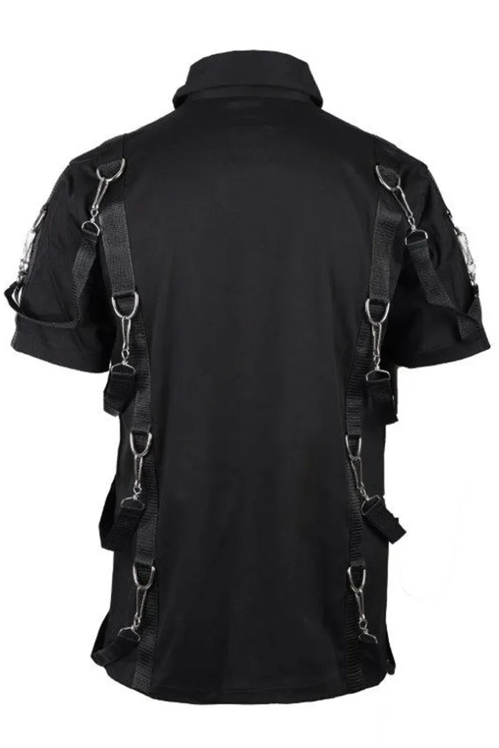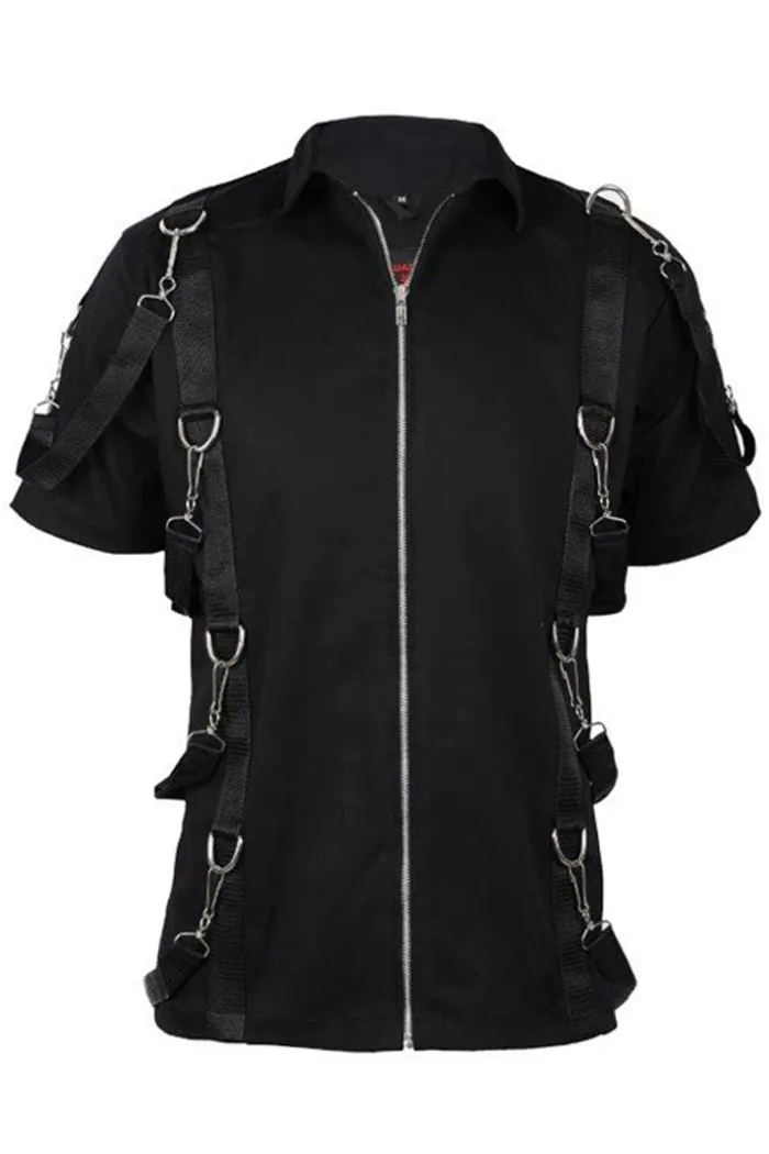 Toller Shirt verziert mit D-Ringen, Karabinern und Schlaufen. Vorne durch einen Reißverschluss zu öffnen und schließen.