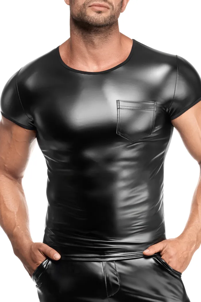 T-Shirt aus weichem, dehnbarem Powerwetlook mit glatter Oberfläche. Enganliegend, kurze Ärmel und Brusttasche. Bequem, flexibel und körperbetont geschnitten.