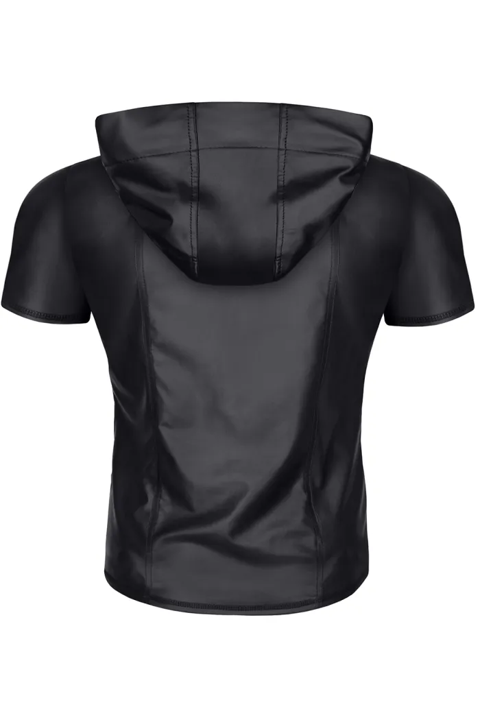 Ein T-Shirt aus glattem, schwarzem Wetlook mit dezentem Glanz. Die weite, tiefe Kapuze und der dunkle Reißverschluss mit eingraviertem RFP-Logo verleihen ihm einen markanten, unverwechselbaren Charakter. Zwei vertikale Nähte am Rücken formen die Silhouette optisch – sie betonen die Taille und heben Schultern und Brust für einen sportlicheren Look hervor. Ziernähte an Ärmeln und Saum sorgen für Raffinesse und Präzision. Das rote Alcantara-Label mit RFP-Logo ist ein auffälliges Premium-Detail. Passt perfekt zur Hose RMGabrielle001.