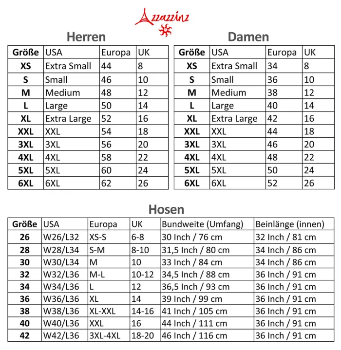 Erhältliche Größen: S, M, L, XL, XXL, 3XL