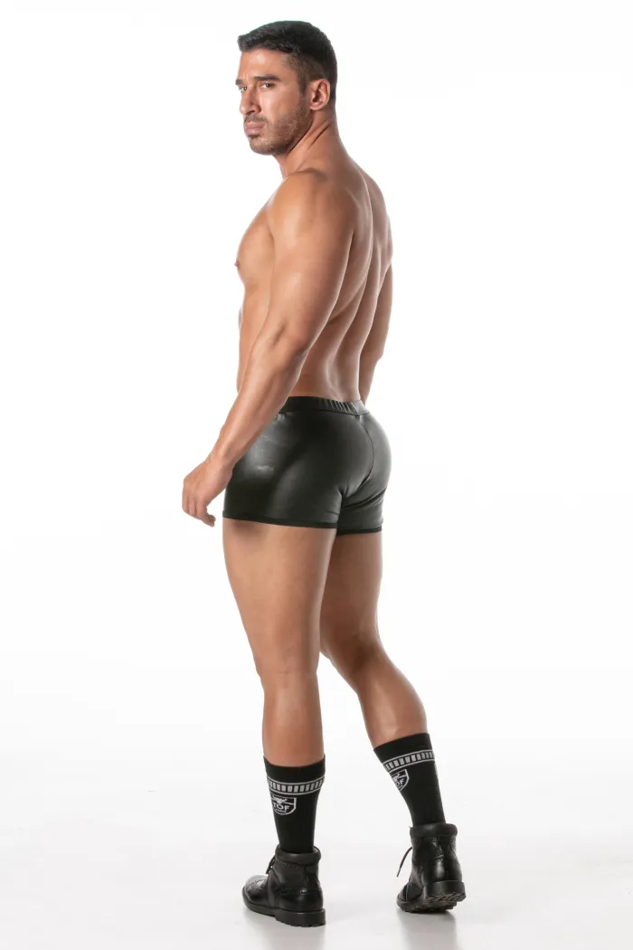 Die Kinky Push-Up-Boxershorts mit Reißverschluss von TOF Paris ist ein Unterwäschestück für selbstbewusste Männer. Gefertigt aus schwarzem Kunstleder, besticht sie durch ein gleichermaßen sexy wie elegantes Design. Der Frontreißverschluss mit Schutzleiste sorgt für Komfort und Sicherheit, während die integrierte Push-Up-Technologie im doppellagigen Frontbeutel optimalen Halt und eine definierte Brust bietet.
