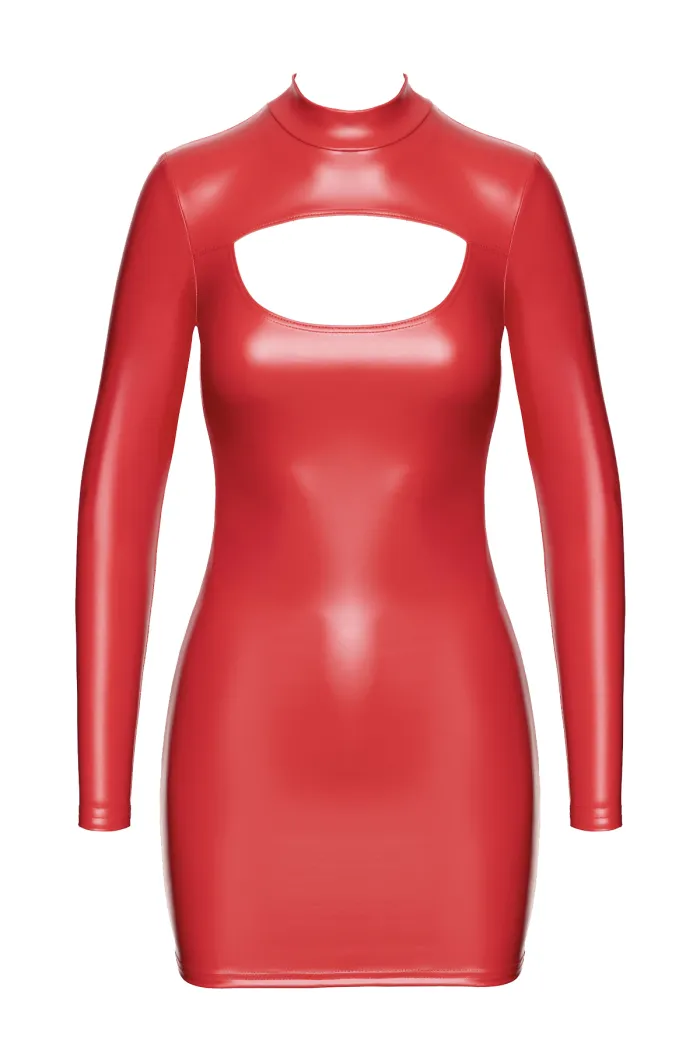 Dieses figurbetonte rote Powerwetlook-Minikleid präsentiert sich elegant und kantig. Der markante Schlüsselloch-Ausschnitt betont die Brust, ergänzt durch lange Ärmel und einen raffinierten Stehkragen. Der verdeckte Reißverschluss am Rücken sorgt für eine nahtlose, perfekte Passform - ideal, um jeden Moment zum Statement zu machen.