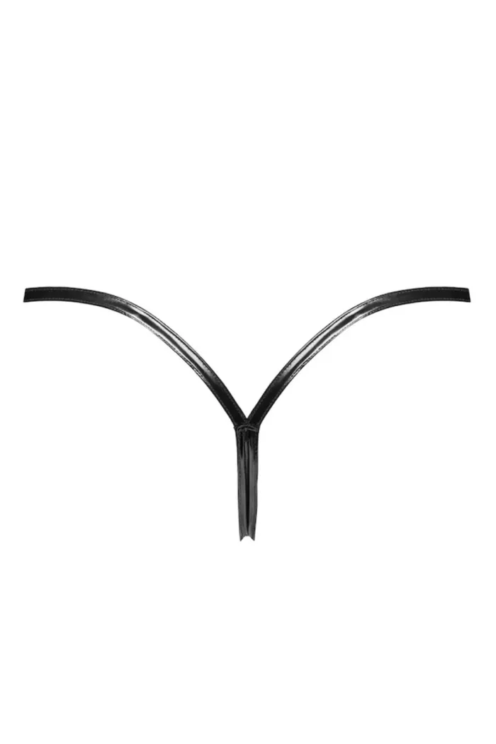 Verleihen Sie Ihrer Dessous-Kollektion mit diesem schwarzen PVC-String mit abnehmbaren Trägern eine gewagte Note. Er kombiniert auffälligen Stil mit vielseitiger Tragbarkeit und eignet sich perfekt für provokante Looks.