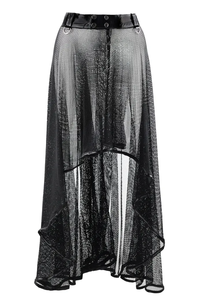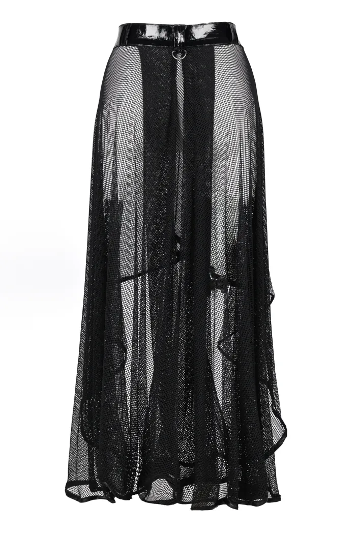 Lieferumfang: Langer Netz Rock mit Lack-Bund schwarz