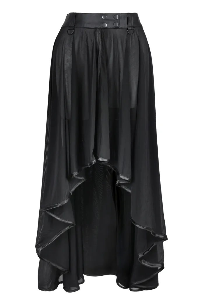 Langer Tüll Rock mit Wetlook-Bund schwarz